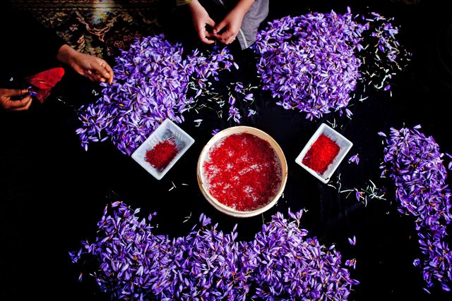 Кашмирский шафран — самая душистая специя в мире. 90% мирового шафрана производят в Иране, но волокна кашмирского толще и ароматнее, что заметно повышает его ценность. Кашмирский шафран очень прихотлив, но 30 лет назад урожаи были настолько большие, что на уборку и упаковку ценных цветов, знакомых россиянам под названием «крокус», у фермеров уходило до шести-семи месяцев. Однако в 1990-х в Кашмире обострился вооружённый конфликт между Индией и Пакистаном. Затем землю поразила засуха, ещё позже — наводнения. Сегодня урожаи настолько мизерные, что фермеры бросают земли и уезжают в поисках лучшей доли. А те, кто остался, молятся, чтобы ситуация улучшилась, а сами могут позволить себе шафран лишь по праздникам.