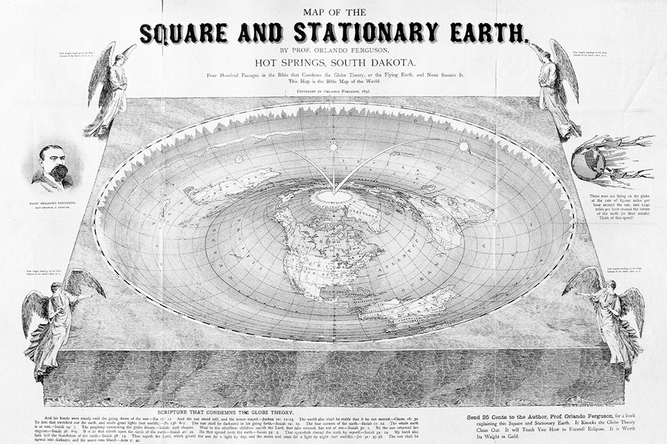 В 1864 году английский писатель Сэмюэл Роуботэм под псевдонимом Параллакс опубликовал книгу с говорящим названием «Зететическая астрономия. Земля не шар» (Earth Not a Globe). Он написал, что Земля — плоский диск, в центре которого находится Северный полюс, а Антарктида — не континент на юге Земли, а ледяная стена, образующая кольцо вокруг земного диска. По мнению Роуботэма, Солнце и Луна находятся в 3000 милях (4800 км) над Землёй, а космос — в 3100 милях (5000 км). Он печатал листовки «Несостоятельность современной астрономии и её противоположность Священному Писанию» и читал об этом платные лекции. Главный аргумент Роуботэма звучал так: в Библии Земля была плоской и неподвижной, мы должны доверять священной книге, а не человеческим догадкам (то есть науке).