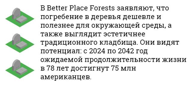 Надгробия не кажутся очевидным предметом для инноваций. Но именно в них увидела потенциал компания Better Place Forests из Силиконовой долины. Она предложила людям альтернативу «ужасным и дорогим кладбищам» — стать после смерти удобрениями для лесных деревьев. Тысячи людей уже согласились на это.