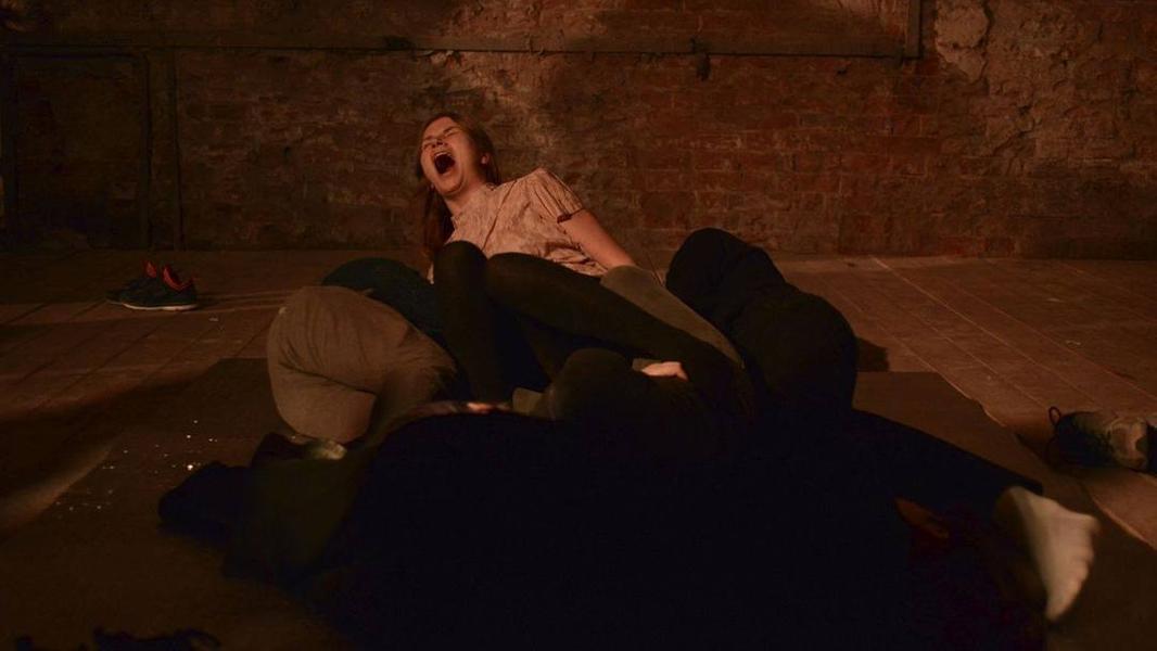 Всё это мы упаковали в своего рода энциклопедию приёмов современного театра: шесть часов зрители ходили по пространству цеха, не могли присесть, перемешивались с перформерами, участвовали в обсуждении и слушали получасовую перформативную лекцию. В связи с этим никакого особенного сопротивления от местного минкульта не было — там, очевидно, просто не понимали, что мы вообще делаем, и сразу согласовали спектакль с временным управляющим заводского кластера.