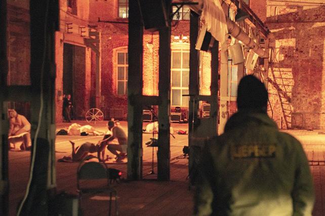 Можно, конечно, пофантазировать, что было бы, если бы мы взялись ставить «Мазэрашу» в государственном театре. Можно даже отбросить на время то критическое обстоятельство, что ни у одного театра России нет в распоряжении такого огромного аутентичного пространства, как цех Ремпутьмаша, который сам по себе делает в спектакле половину работы — на обычной сцене или даже в блэкбоксе этот перформанс просто не мог бы появиться.