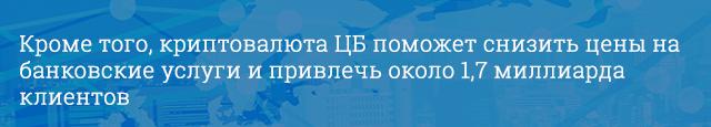 Кроме того, криптовалюта ЦБ поможет снизить цены на банковские услуги и привлечь около 1,7 миллиарда клиентов.